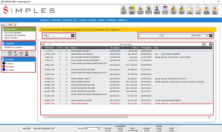 6. Grade de Duplicatas: Mostra todas as Duplicatas conforme os filtros descritos anteriormente.
