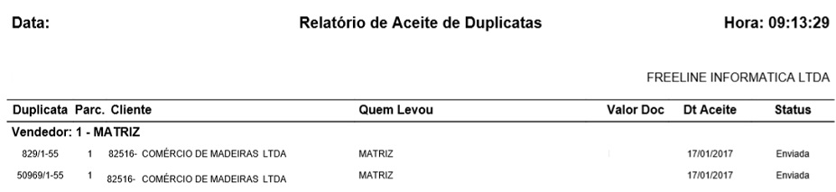 Para acessar este relatório é preciso ir ao Menu “ Financeiro - Relatórios - Aceite Duplicatas”.