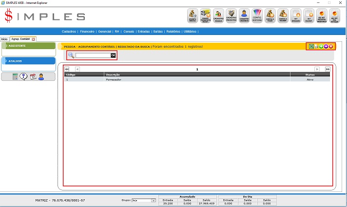 2. Grade de Acessórios: Mostra todos os Agrupamentos Contábeis.