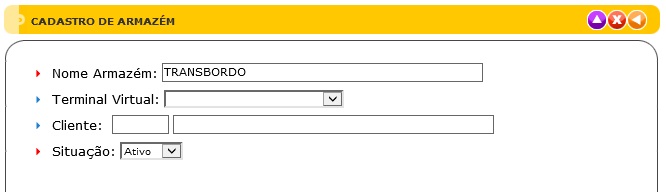 A tela do Cadastro de Armazém possui cinco elementos principais que executam funções distintas, conforme seguem:
