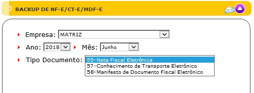 Para acessar esta Tela de Backup NF-e é preciso ir ao Menu “Utilitários - Backup NF-e / CT-e / MDF-e”.