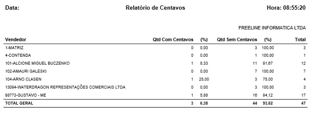 Para acessar este relatório é preciso ir ao Menu “ Relatórios - Notas/Cupons - Vendas - Centavos".