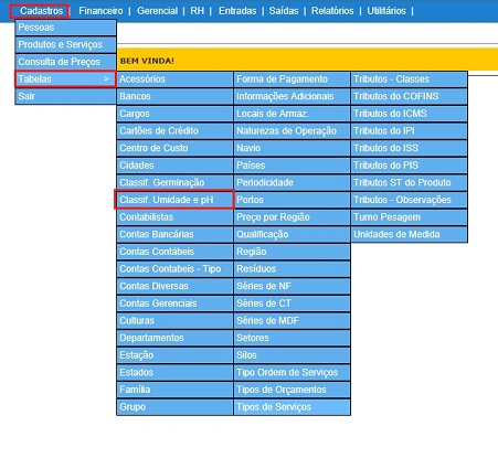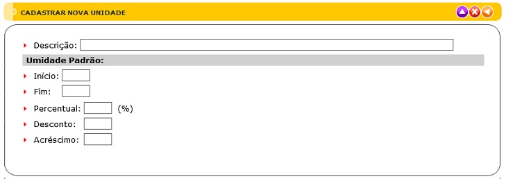 A tela do Cadastro de Classificação de Umidade e pH possui quatro elementos principais que executam funções distintas, conforme seguem: