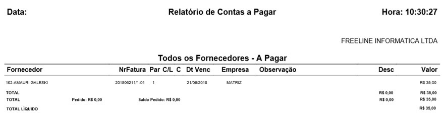 Para acessar este relatório é preciso ir ao Menu “ Financeiro - Relatórios - Contas a Pagar - Consultas”.