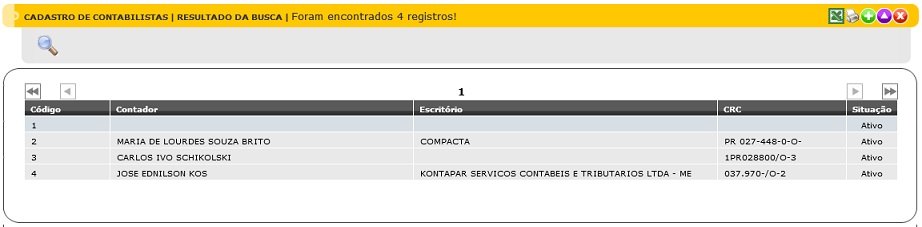 - Grade de Contabilistas: Mostra todos os Contabilistas conforme os filtros descritos anteriormente.