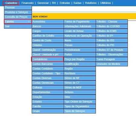 - Filtro Nome: Permite filtrar a Grade de Contabilistas pela inicial do nome, de acordo com a letra selecionada no filtro.