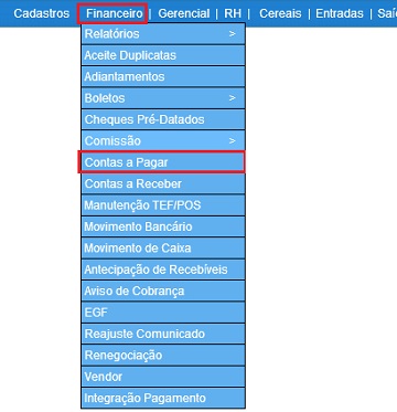 Para acessar o Contas a Receber, use o Menu “Financeiro - Contas a Pagar”.