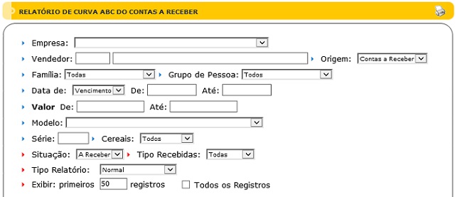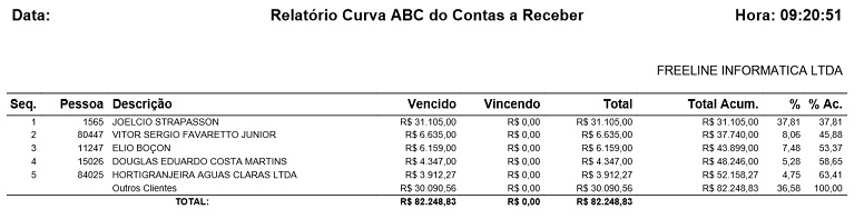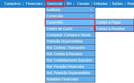 Para acessar, use o Menu “Gerencial - Curva ABC - Contas a Receber ”.