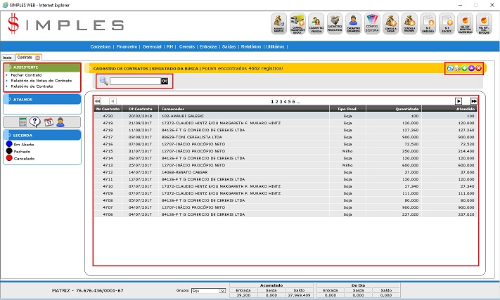 3. Grade: Apresenta todas os contratos de acordo com a pesquisa e filtro aplicado.