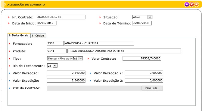 - Pesquisa: Permite executar uma pesquisa genérica usando o Fornecedor, Nr do Contrato, Produto.