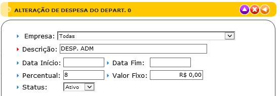 - Para Editar uma Despesa do Departamento, o usuário deve selecionar uma Despesa da Grade de Despesas do Departamento, e clicar no ícone de editar no navegador. Ao editar os dados desejados, clicar no botão de alterar para confirmar a alteração.