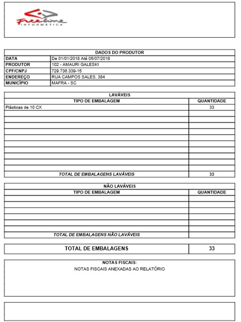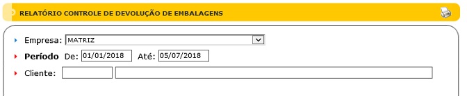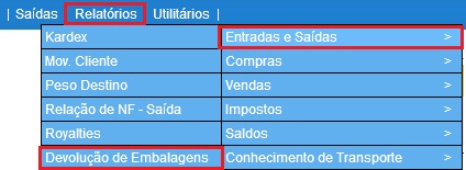 Para acessar este relatório é preciso ir ao Menu “ Relatórios - Notas - Entradas e Saídas - Devolução de Embalagens”.