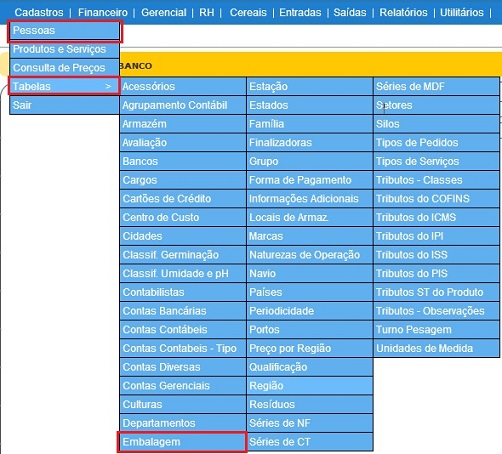 Para acessar o Cadastro de Embalagens, use o Menu “Cadastro - Tabelas - Embalagem”.