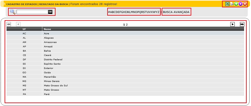 A tela de Estados possui três elementos principais que executam  funções distintas, conforme seguem: