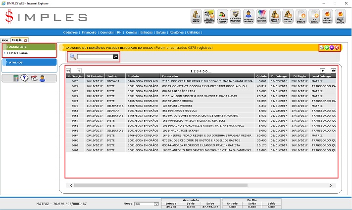 - Grade: Apresenta todas as compras cadastradas de acordo com a pesquisa e filtro aplicado.