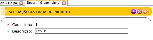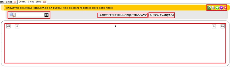 A tela do Cadastro de Linhas do Grupo do Departamento possui cinco elementos principais que executam funções distintas, conforme seguem: