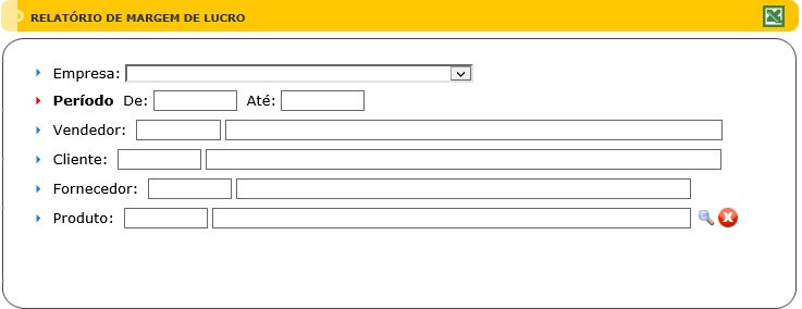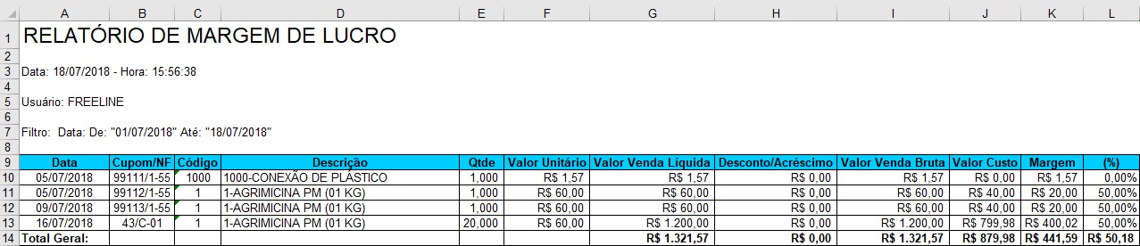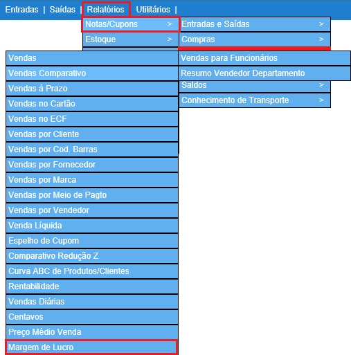 Para acessar este relatório é preciso ir ao Menu “ Relatórios - Notas/Cupons - Vendas - Margem de Lucro".