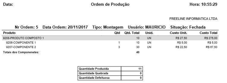 A tela Ordem de Produção possui seis elementos principais que executam funções distintas, conforme seguem: