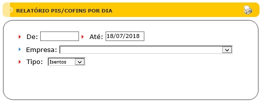 Para acessar este relatório é preciso ir ao Menu “Relatórios-Notas/Cupons - Impostos - PIS/COFINS por Dia”.