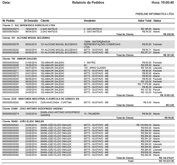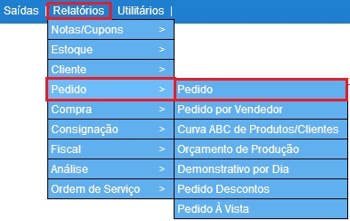 Para acessar este relatório é preciso ir ao Menu “ Relatórios - Pedido - Pedido"