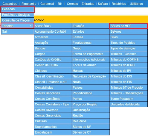 Para acessar o cadastro de Séries de MDF, use o Menu “Cadastro - Tabelas – Séries de MDF”. Será apresentada a tela principal de Séries de MDF.
