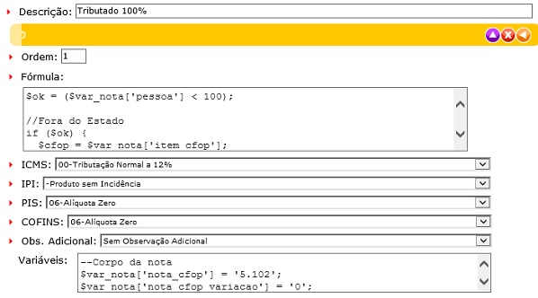 - Atalhos: Permite de forma rápida entrar nos cadastros de: Tributos do ICMS, Tributos do ISS, Tributos do IPI, Tributos do PIS, Tributos do COFINS e Obs. dos Tributos.