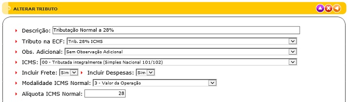 A tela do Cadastro de Tributos do ICMS possui seis elementos principais que executam funções distintas, conforme seguem: