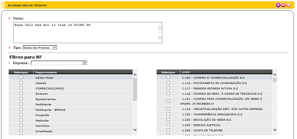 - Tipo: Dados Adicionais, informação adicional que é usada no Rodapé da Nota Fiscal, pode ser informada em outros cadastros, como, todos os cadastros de Tributos.