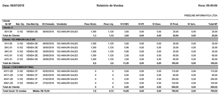 Para acessar este relatório é preciso ir ao Menu “ Relatórios - Notas/Cupons - Vendas - Vendas”.