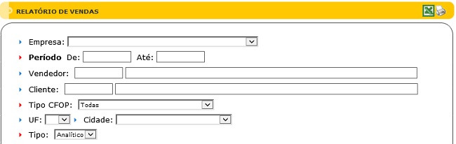 Esse relatório terá a possibilidade de ser exportado para o Excel, clicando em “Gerar arquivo Excel”, ou impresso, clicando em “Gerar Relatório”.
