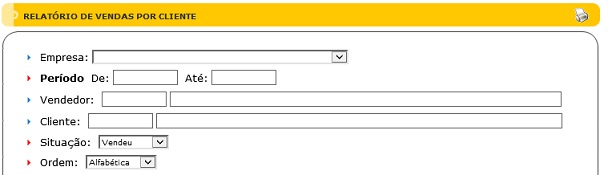 Para acessar este relatório é preciso ir ao Menu “ Relatórios - Notas/Cupons - Vendas - Vendas por Cliente”.